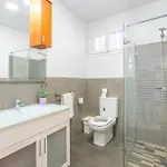 Cette villa comprend une salle de bains avec une toilette séparée et une douche. Un sèche-cheveux et des draps de bain sont également fournis.